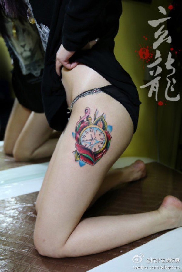 美女腿部漂亮时尚的怀表纹身图案_腿部纹身图案大全_纹身图吧