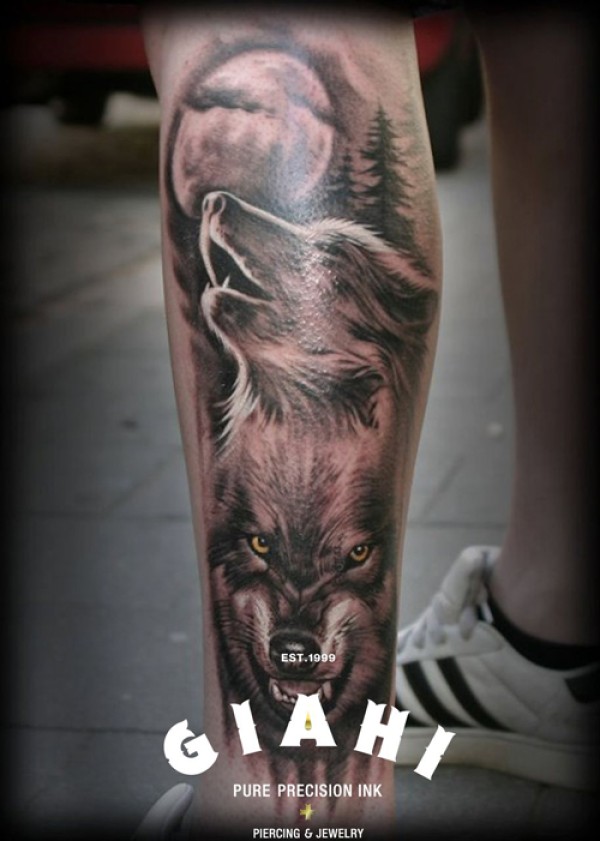 腿部凶悍超酷的狼头纹身图案_腿部纹身图案大全_纹身图吧