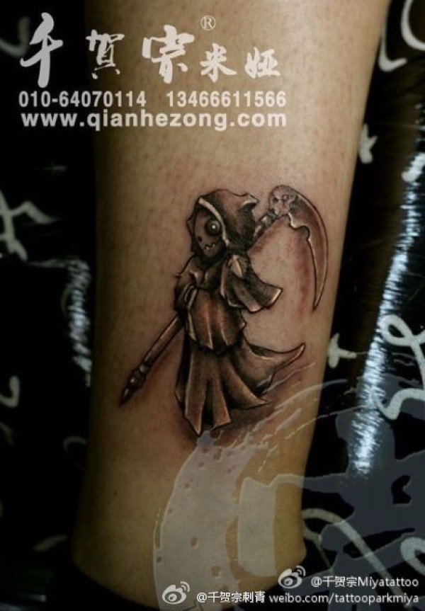 腿部一款Q版的死神纹身图案_腿部纹身图案大全_纹身图吧