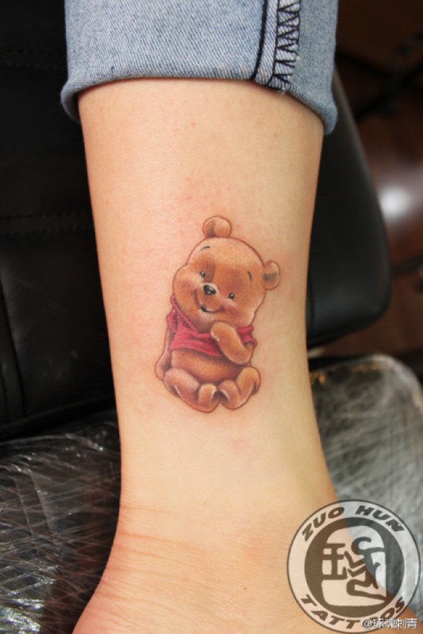 美女腿部可爱的维尼小熊纹身图案_腿部纹身图案大全_纹身图吧
