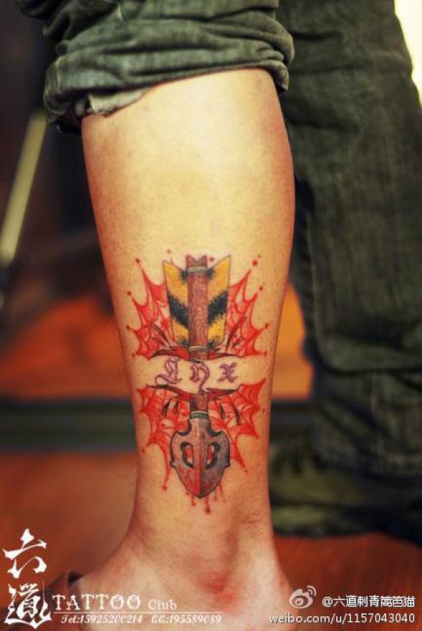 腿部时尚经典的弓箭纹身图案_腿部纹身图案大全_纹身图吧