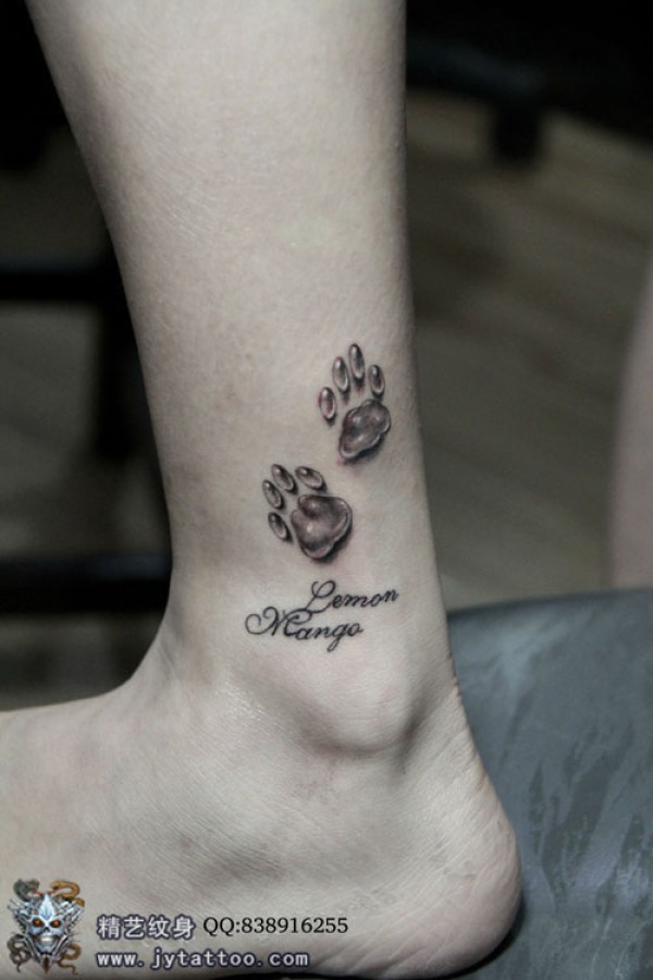 腿部小巧的猫咪爪印纹身图案_腿部纹身图案大全_纹身图吧