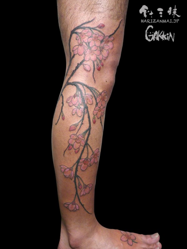 男人腿部唯美经典的桃花纹身图案_腿部纹身图案大全_纹身图吧