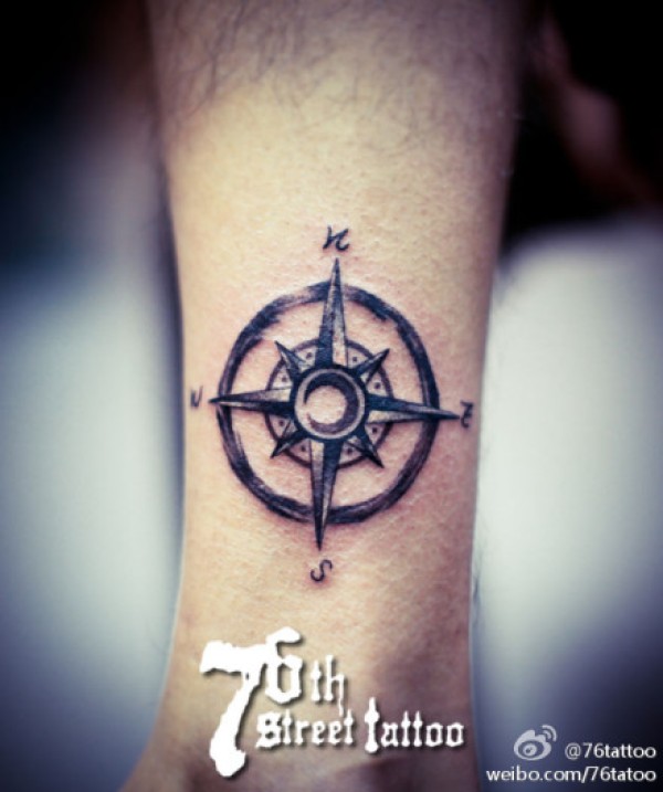 男生腿部时尚经典的指南针纹身图案_腿部纹身图案大全_纹身图吧