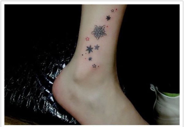 女脚踝到小腿时尚精美的星星与雪花纹身图案_腿部纹身图案大全_纹身图吧