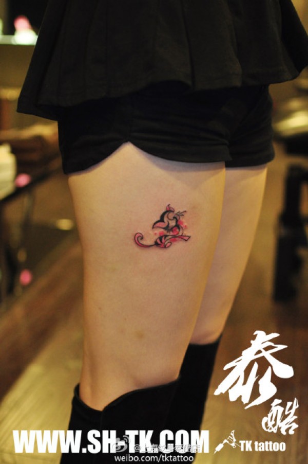美女腿部小巧精美的猫咪纹身图案_腿部纹身图案大全_纹身图吧