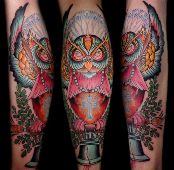 腿部经典超酷的猫头鹰纹身图案_腿部纹身图案大全_纹身图吧