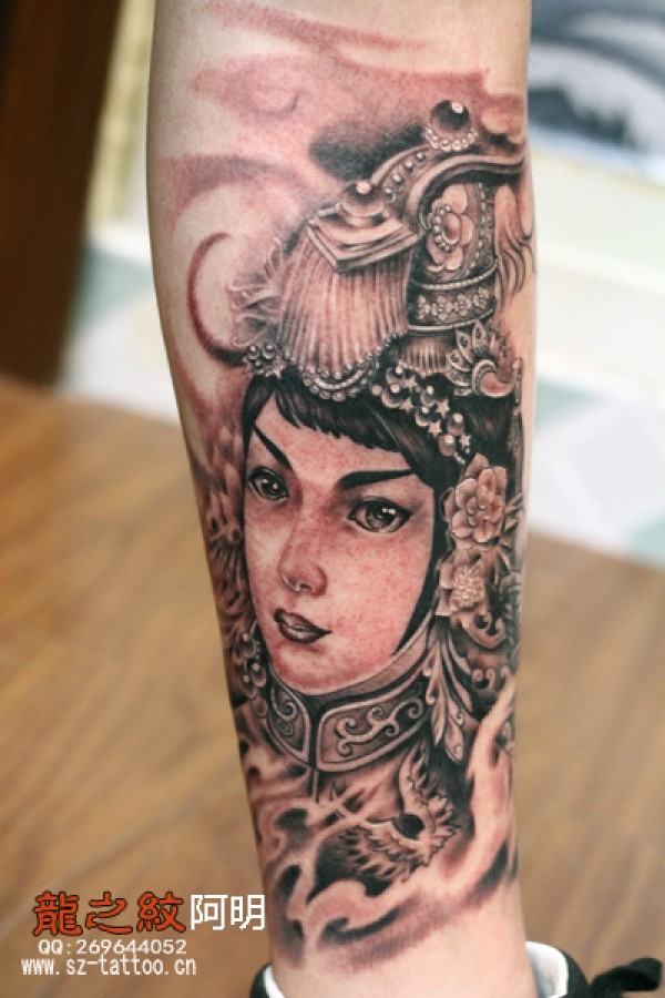 腿部漂亮的古典美女纹身图案_腿部纹身图案大全_纹身图吧