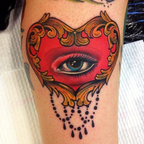 腿部唯美时尚的爱心与眼睛纹身图案_腿部纹身图案大全_纹身图吧