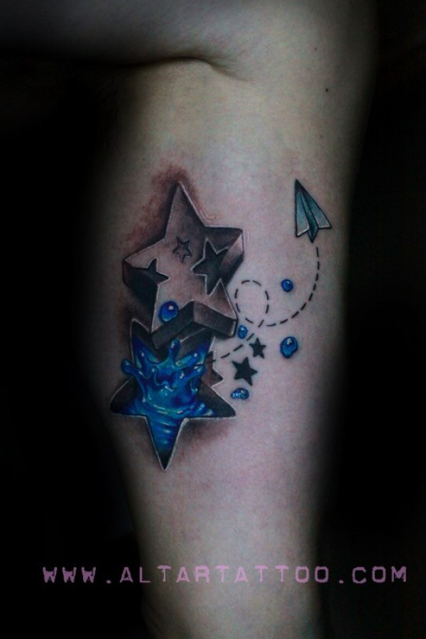 腿部时尚另类的浮雕烙印五角星纹身图案_腿部纹身图案大全_纹身图吧