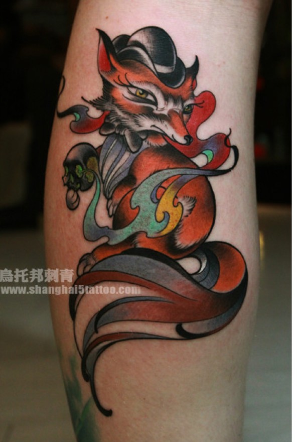 男生腿部时尚经典的狐狸纹身图案_腿部纹身图案大全_纹身图吧