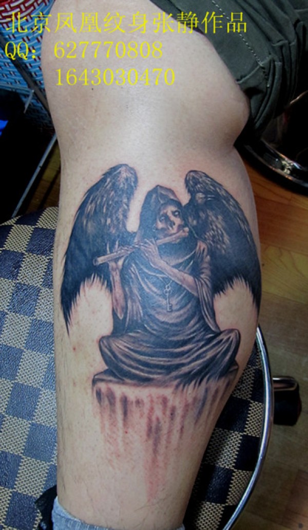 男人腿部帅气时尚的死神纹身图案_腿部纹身图案大全_纹身图吧