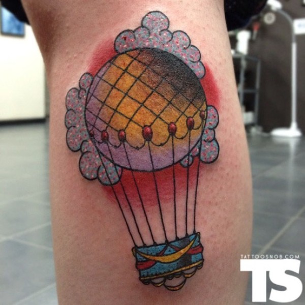 腿部唯美另类的彩色热气球纹身图案_腿部纹身图案大全_纹身图吧