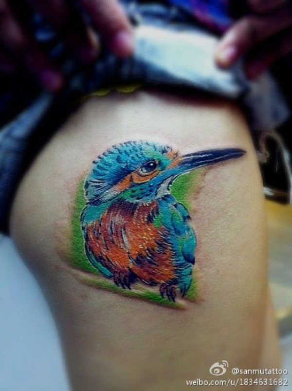 美女腿部漂亮的彩色蜂鸟纹身图案_腿部纹身图案大全_纹身图吧
