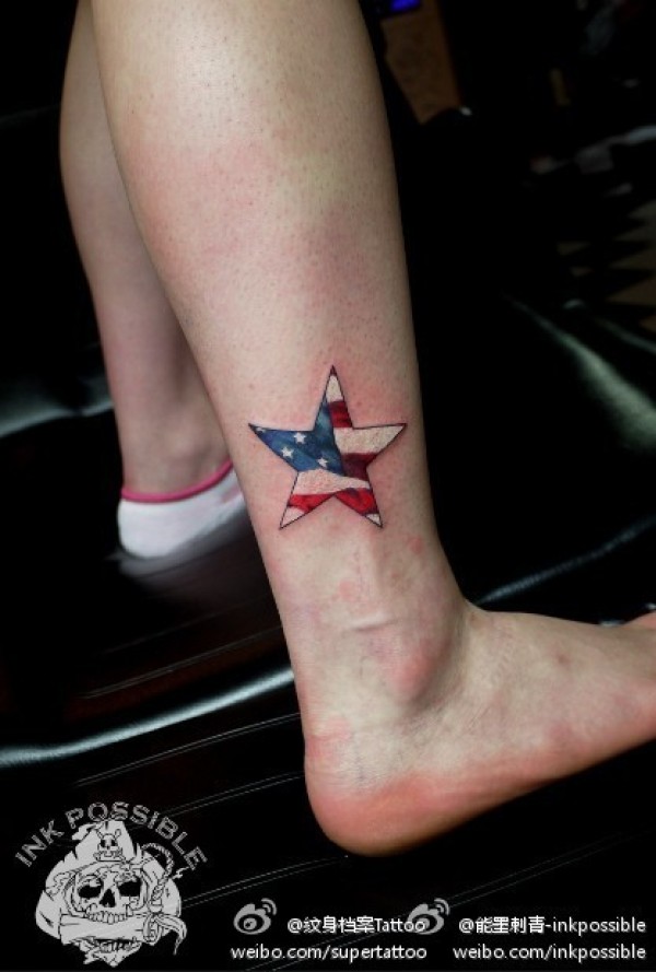 腿部五角星美国国旗纹身图案_腿部纹身图案大全_纹身图吧