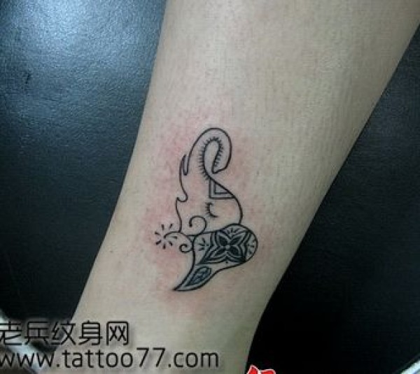 腿部简单漂亮的小象纹身图案_腿部纹身图案大全_纹身图吧