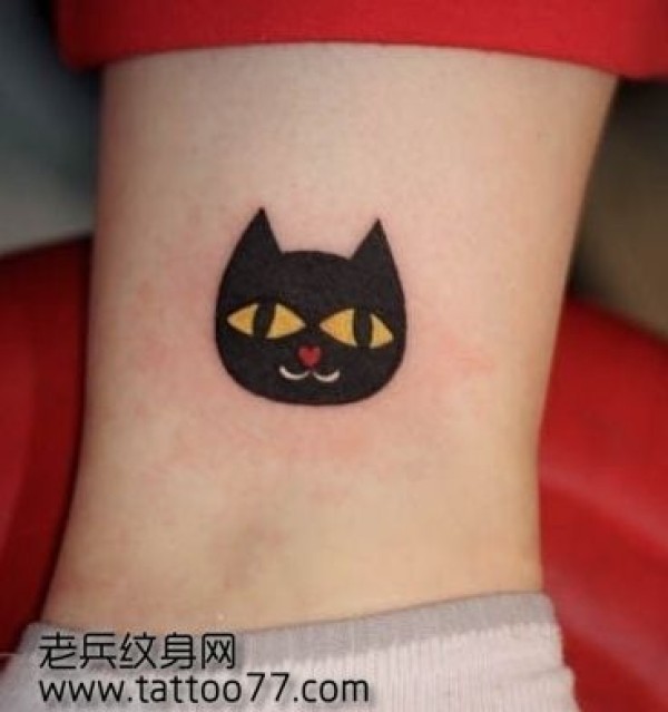 腿部可爱的笑脸猫咪纹身图案_腿部纹身图案大全_纹身图吧