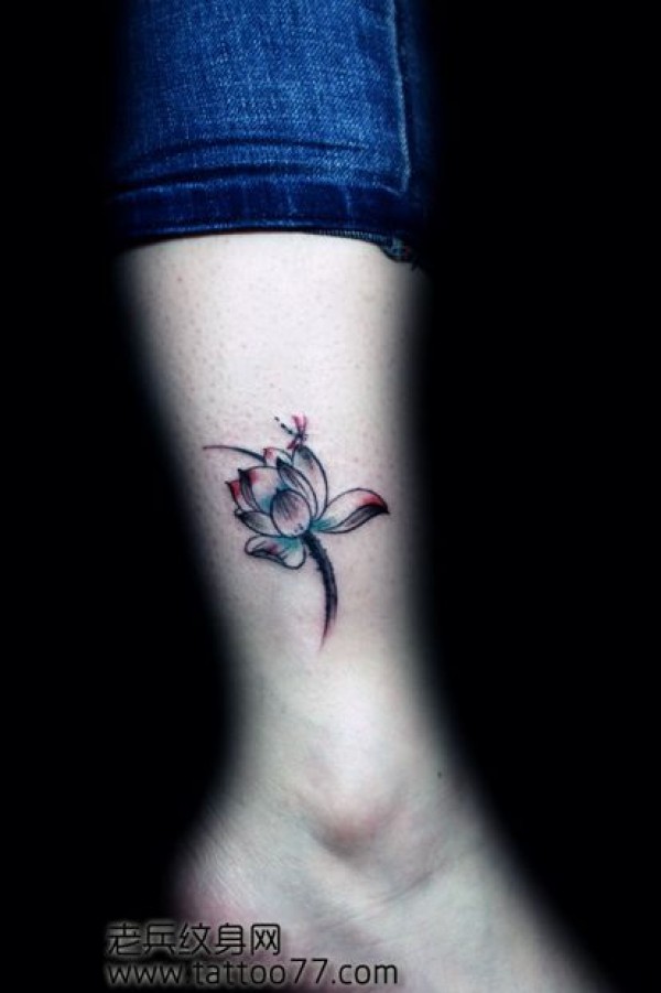 女孩子腿部漂亮的莲花纹身图案_腿部纹身图案大全_纹身图吧