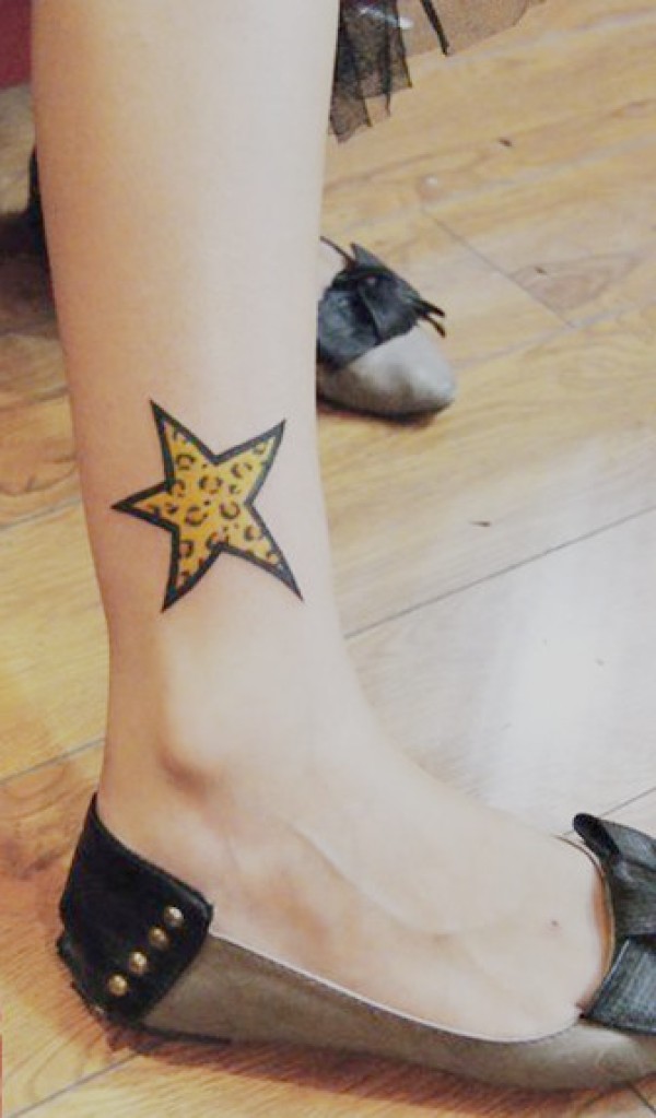 女孩子腿部好看的彩色五角星豹纹纹身图案_腿部纹身图案大全_纹身图吧