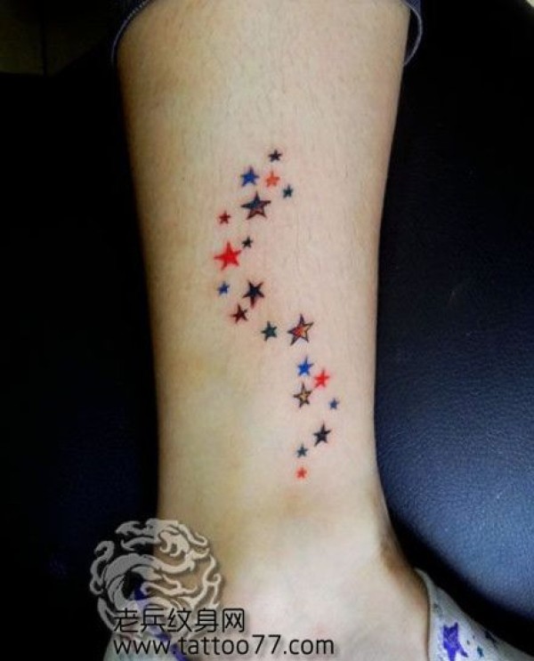 女孩子腿部彩色五角星纹身图案_腿部纹身图案大全_纹身图吧