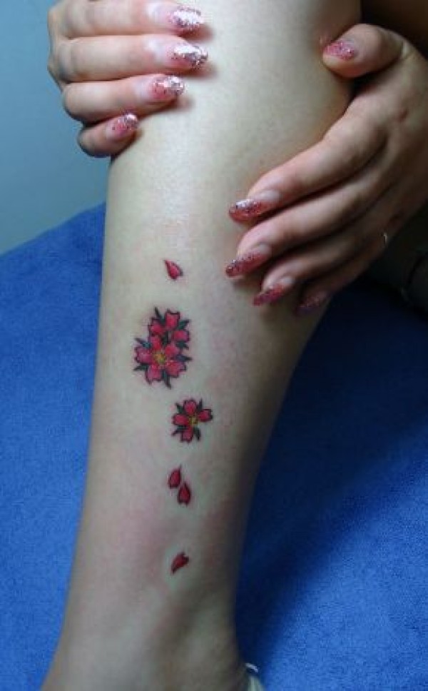 女孩子腿部精美小巧的樱花纹身图案_腿部纹身图案大全_纹身图吧
