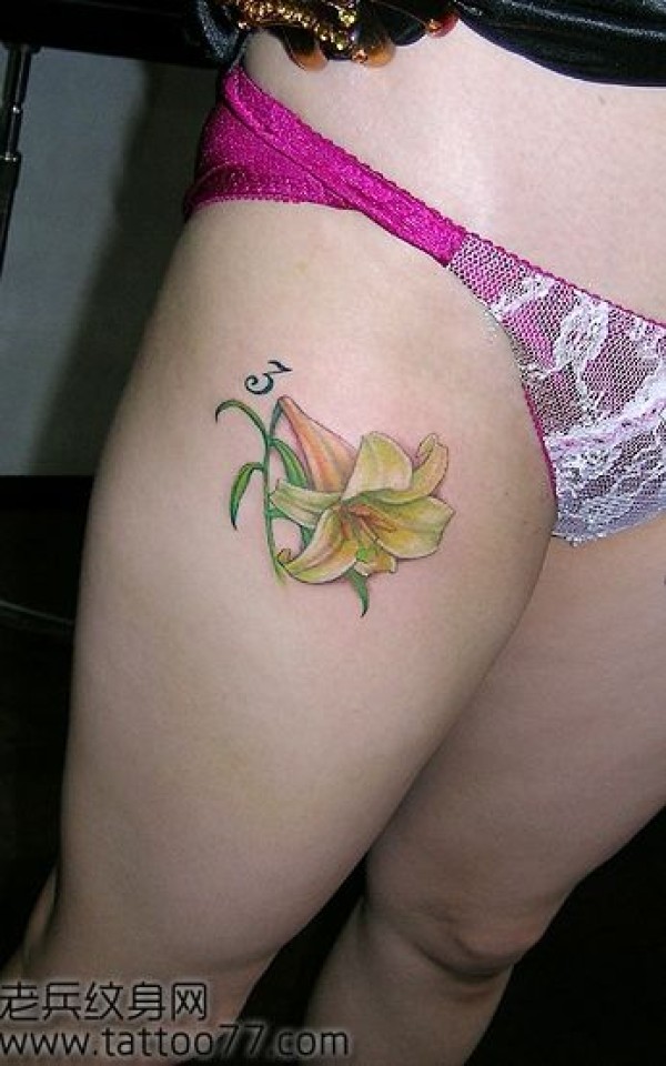 美女腿部一款彩色百合花纹身图案_腿部纹身图案大全_纹身图吧