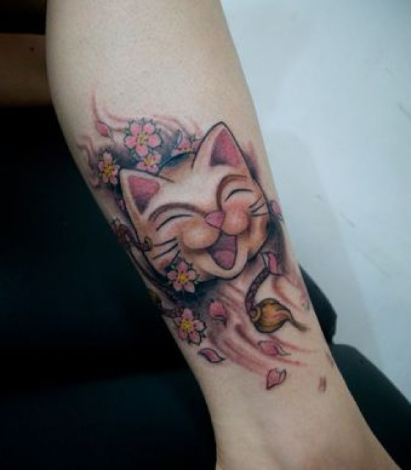 女孩子腿部一款喜感的猫咪纹身图案_腿部纹身图案大全_纹身图吧