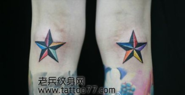 美女腿部精美的彩色五芒星纹身图案_腿部纹身图案大全_纹身图吧