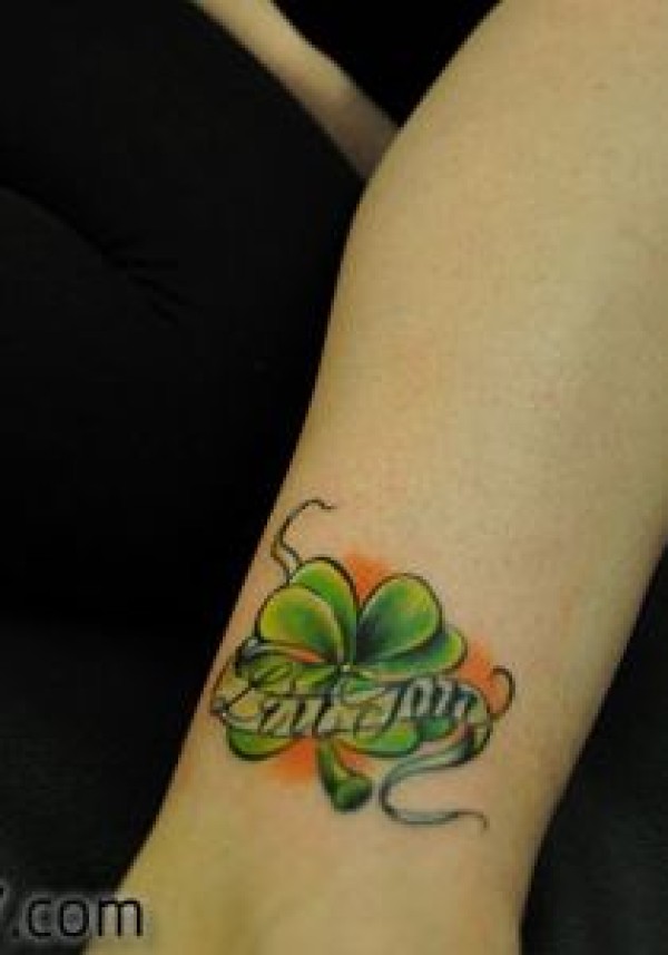 美女腿部一款精美的彩色四叶草纹身图案_腿部纹身图案大全_纹身图吧