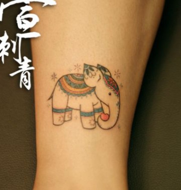 女孩子腿部可爱的大象纹身图案_腿部纹身图案大全_纹身图吧