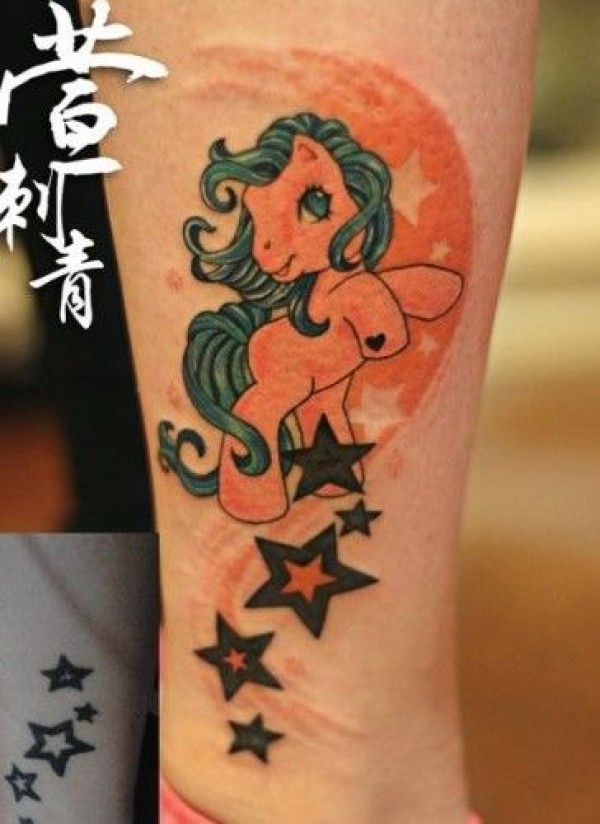 女孩子腿部彩色小天马纹身图案_腿部纹身图案大全_纹身图吧