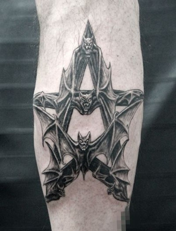 腿部超酷的一款蝙蝠五芒星纹身图案_腿部纹身图案大全_纹身图吧
