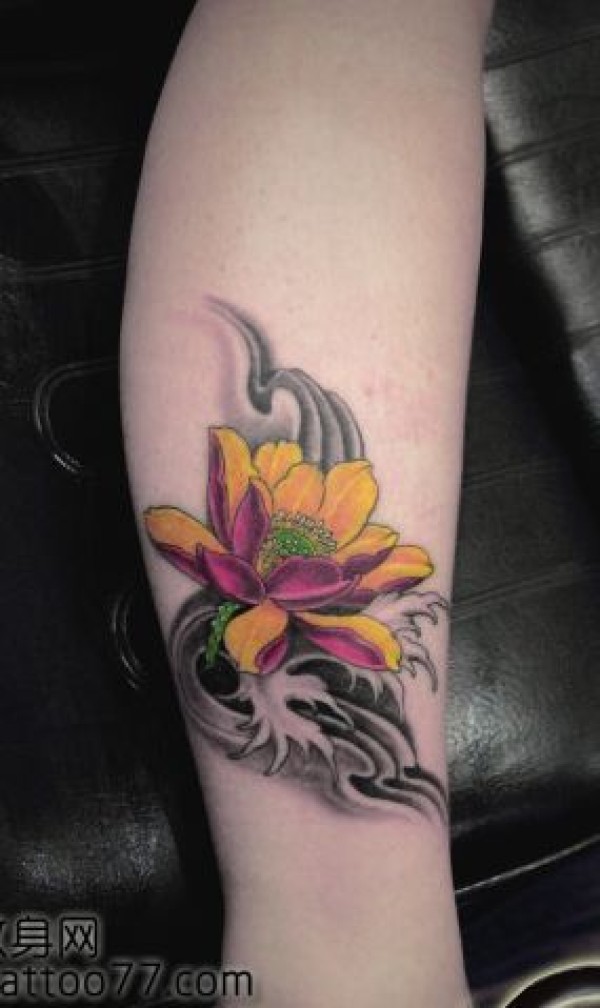 女孩子腿部一款彩色莲花纹身图案_腿部纹身图案大全_纹身图吧
