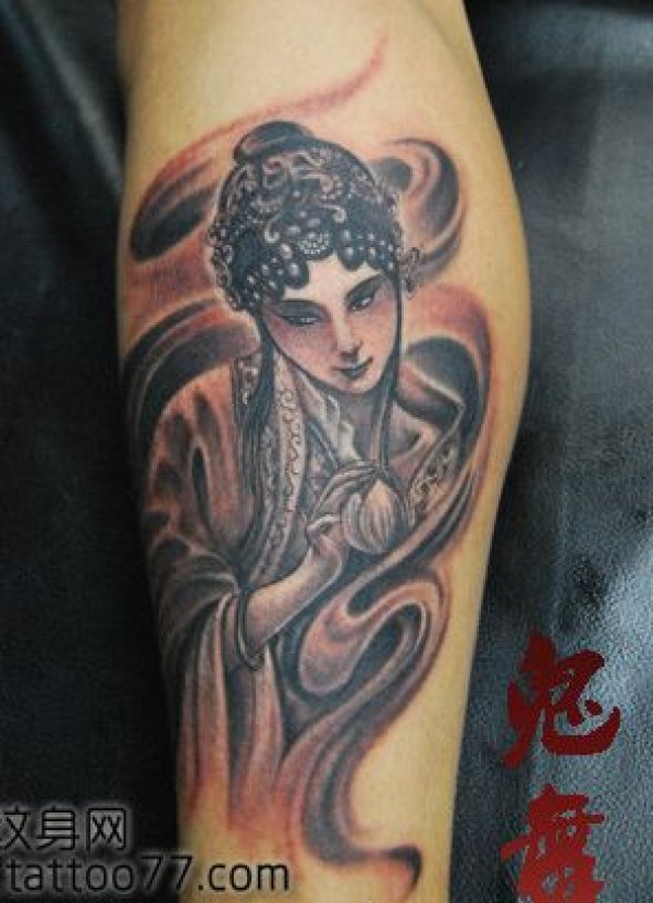 腿部古典美女花旦纹身图案_腿部纹身图案大全_纹身图吧