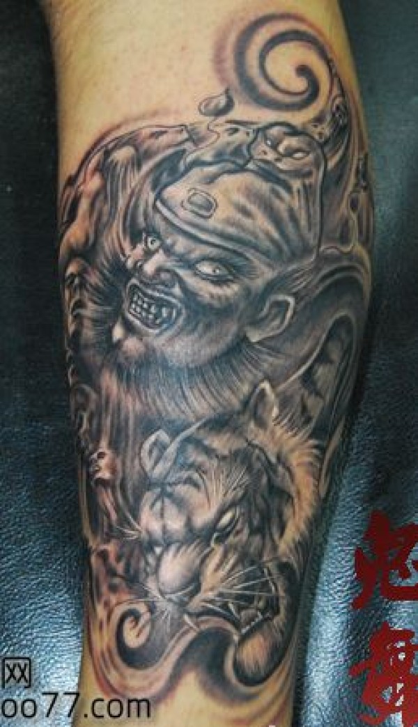 腿部霸气的钟馗老虎纹身图案_腿部纹身图案大全_纹身图吧