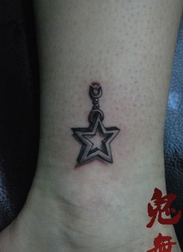 腿部一款吊链五角星纹身图案_腿部纹身图案大全_纹身图吧