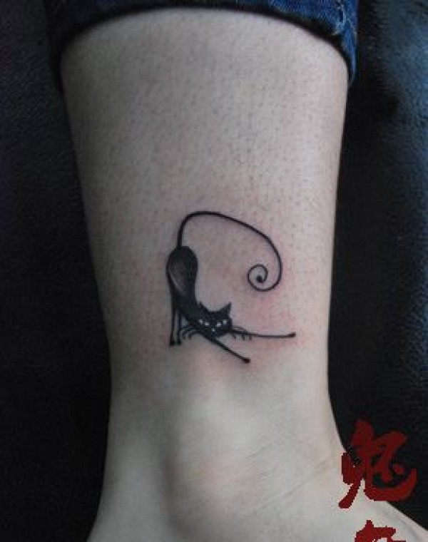 女孩子腿部可爱的猫咪纹身图案_腿部纹身图案大全_纹身图吧