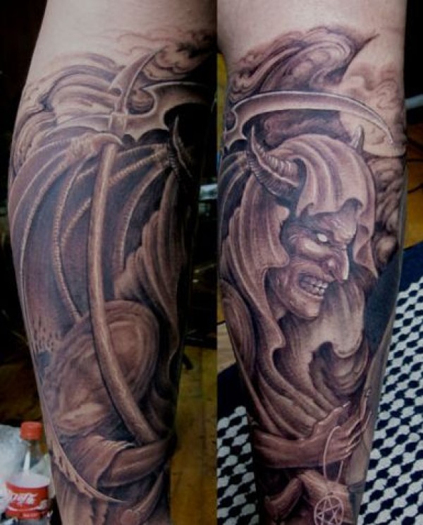 腿部超酷的恶魔纹身图案_腿部纹身图案大全_纹身图吧