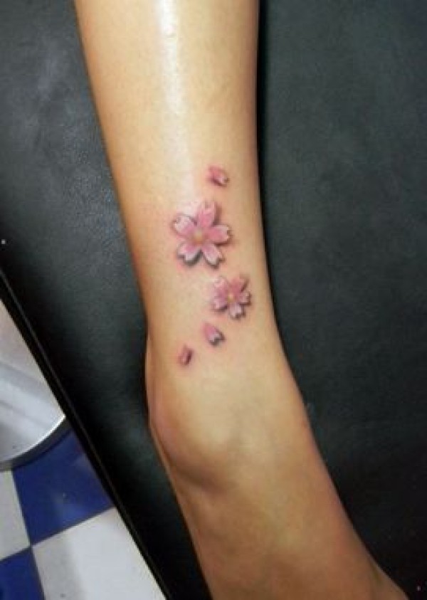 女孩子腿部好看的彩色樱花纹身图案_腿部纹身图案大全_纹身图吧