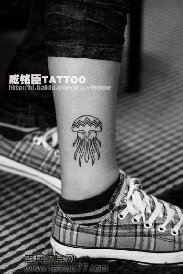 腿部流行时尚的水母纹身图案_腿部纹身图案大全_纹身图吧