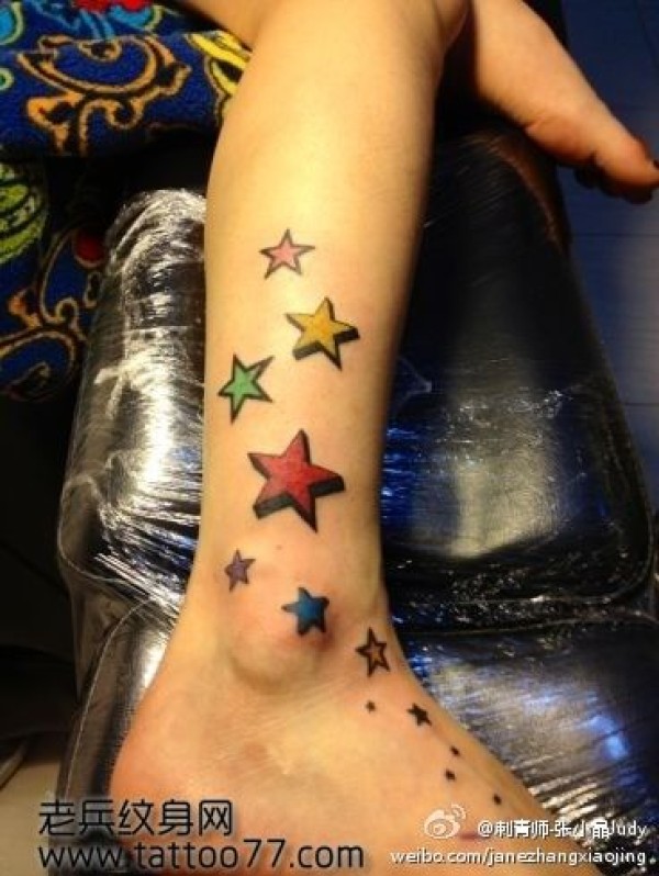 女孩子腿部流行的五角星纹身图案_腿部纹身图案大全_纹身图吧