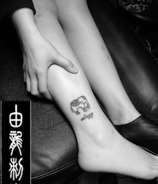 女孩子腿部可爱流行的小象纹身图案_腿部纹身图案大全_纹身图吧