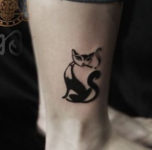 女孩子腿部抽烟的猫咪纹身图案_腿部纹身图案大全_纹身图吧