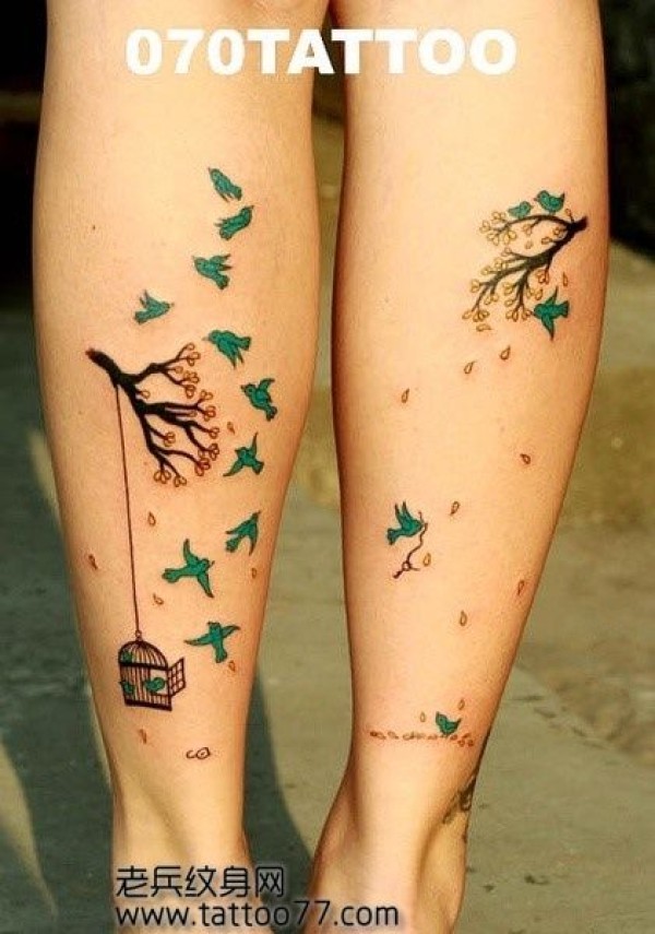 女孩子腿部小鸟鸟笼纹身图案_腿部纹身图案大全_纹身图吧