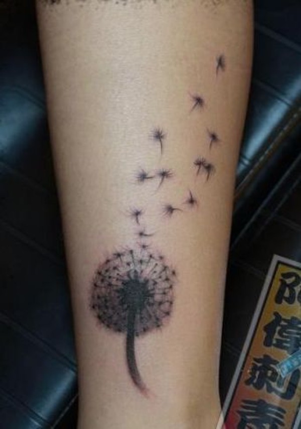 流行精美的腿部蒲公英纹身图案_腿部纹身图案大全_纹身图吧