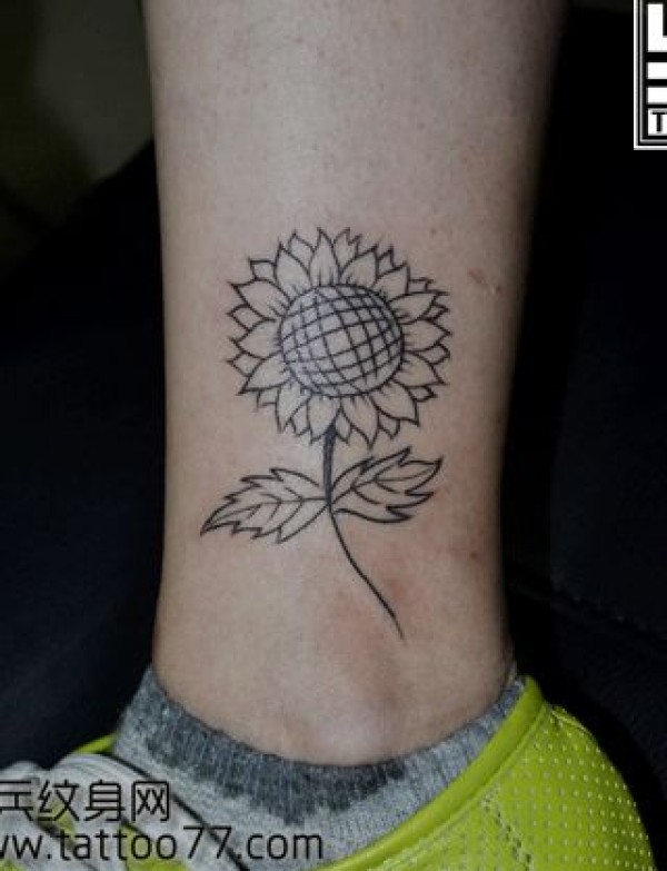 腿部好看时尚的向日葵纹身图案_腿部纹身图案大全_纹身图吧