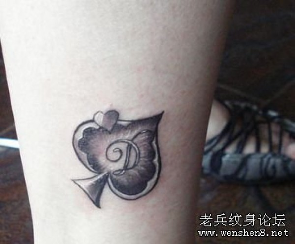 一款经典时尚美女腿部黑桃爱心纹身图案纹身图_腿部纹身图案大全_纹身图吧