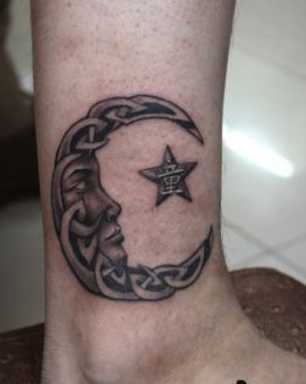 腿部纹身图案腿部月亮星星五角星纹身图案纹_腿部纹身图案大全_纹身图吧