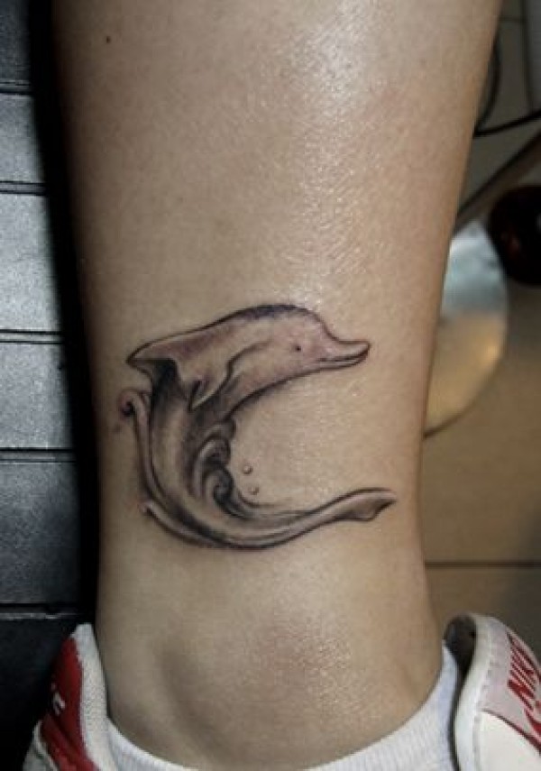 一款时尚腿部海豚纹身图案纹身图片_腿部纹身图案大全_纹身图吧