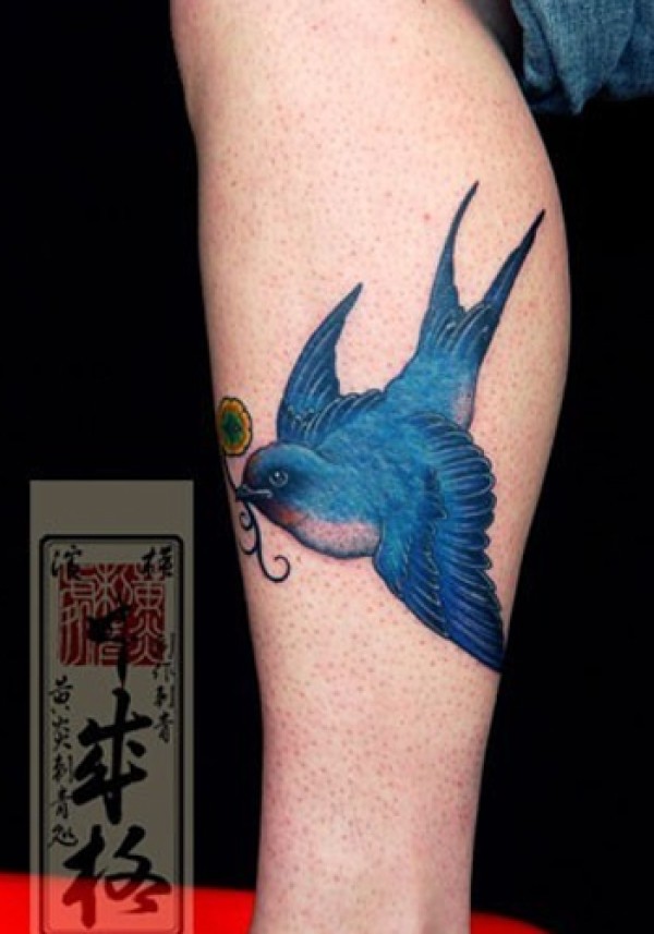 腿部彩色燕子纹身_腿部纹身图案大全_纹身图吧